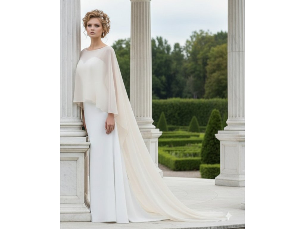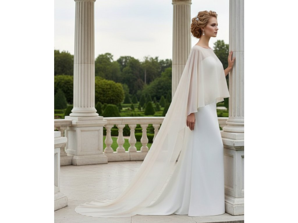 Dlhá svadobná pelerína z mušelínu - ivory: BF-195