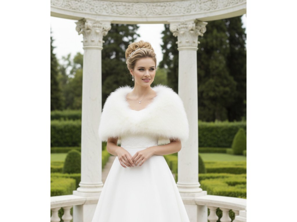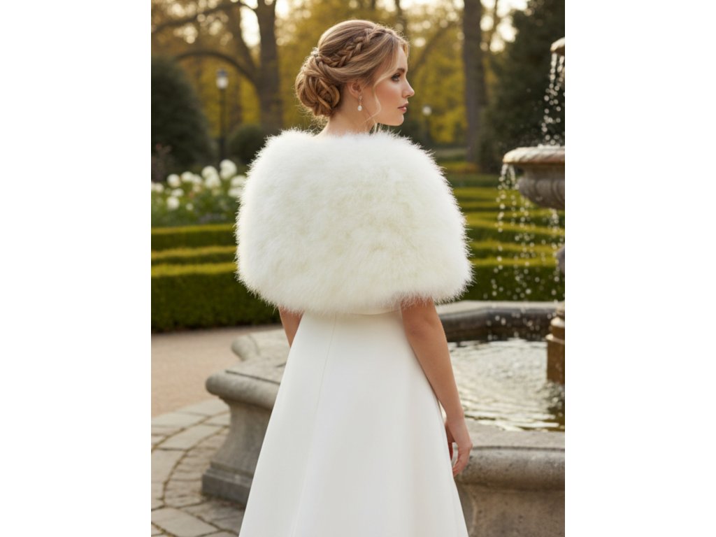 Kožušinová svadobná pelerínka s perím z Marabu.
