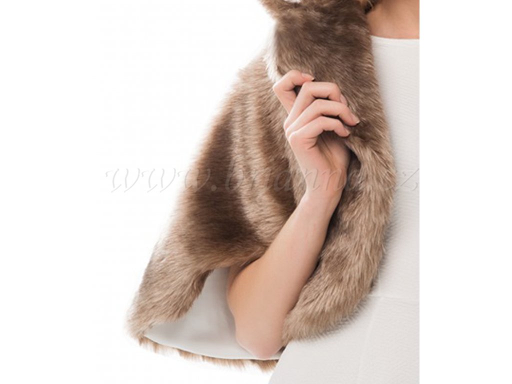 Kožušinová spoločenská pelerínka s kapucňou - zlatá hnedá: BFB-80