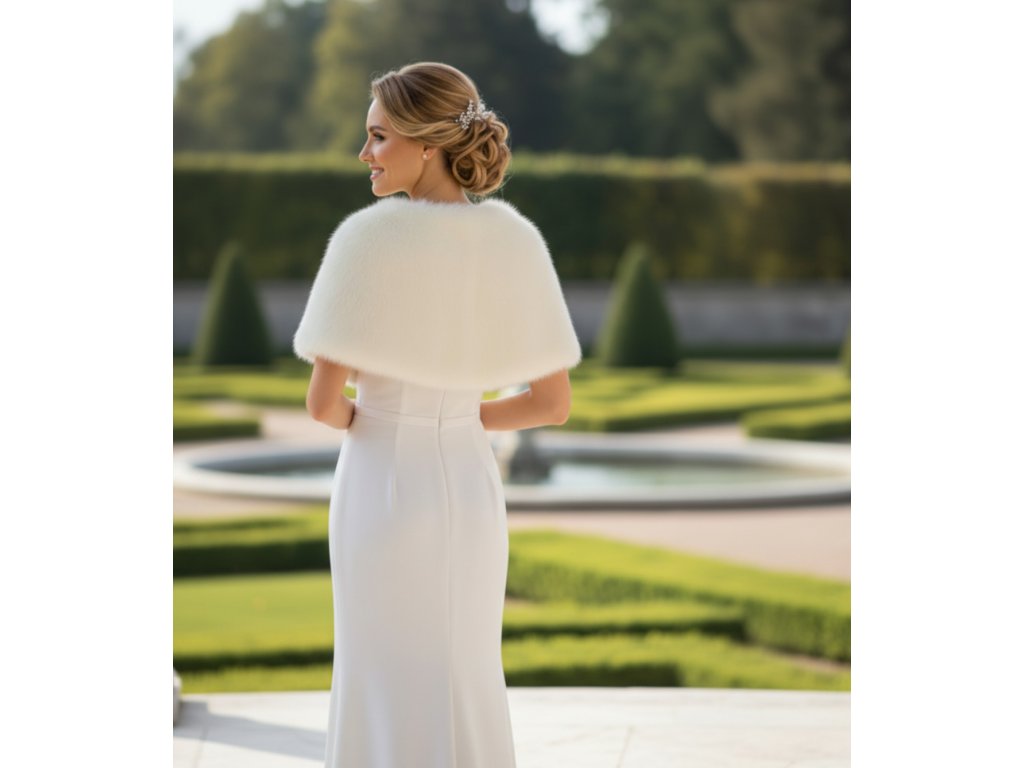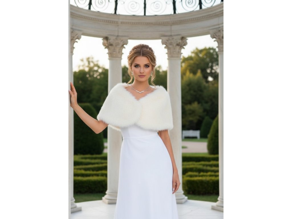 Svadobná pelerínka z umelej kožušiny.