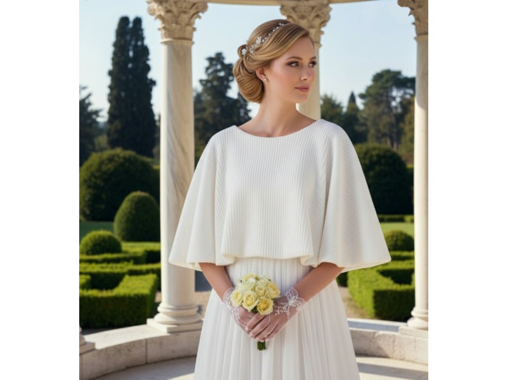 Krátky svadobný plášť pre nevestu.