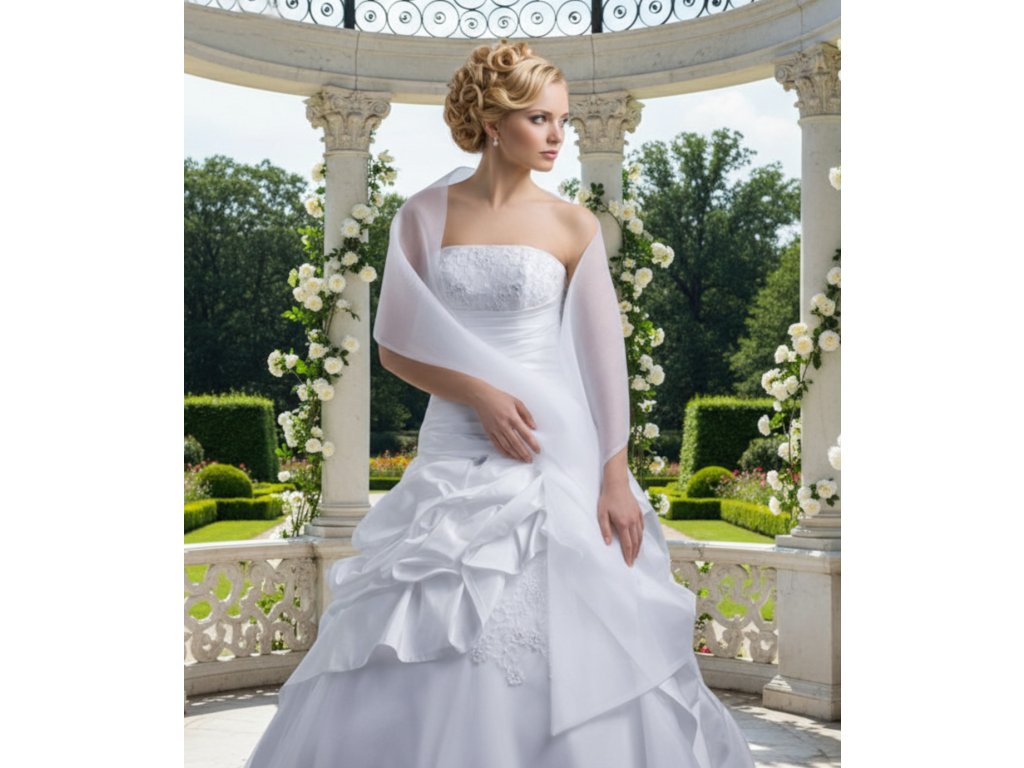 Organzový svadobný šál: SM-18 O biely