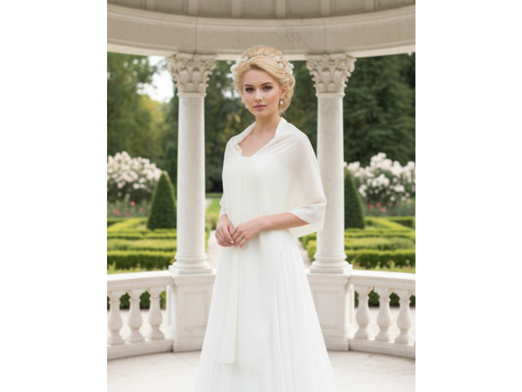 Šifónový svadobný šál cez ramená.