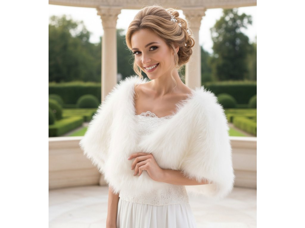 Svadobný šál z jemnej kožušiny - biely: SD-23