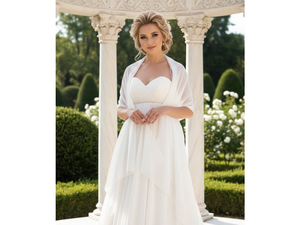 Šifónový svadobný šál s jemným pozdĺžnym ryhovaním.