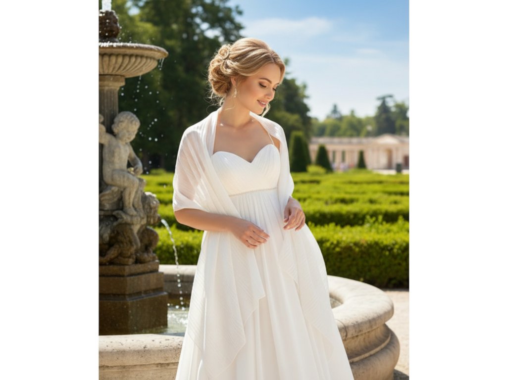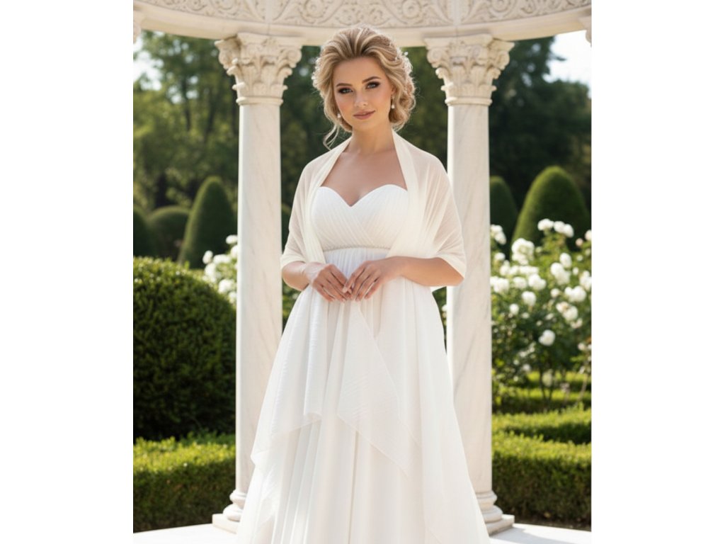 Šifónový svadobný šál s jemným pozdĺžnym ryhovaním.