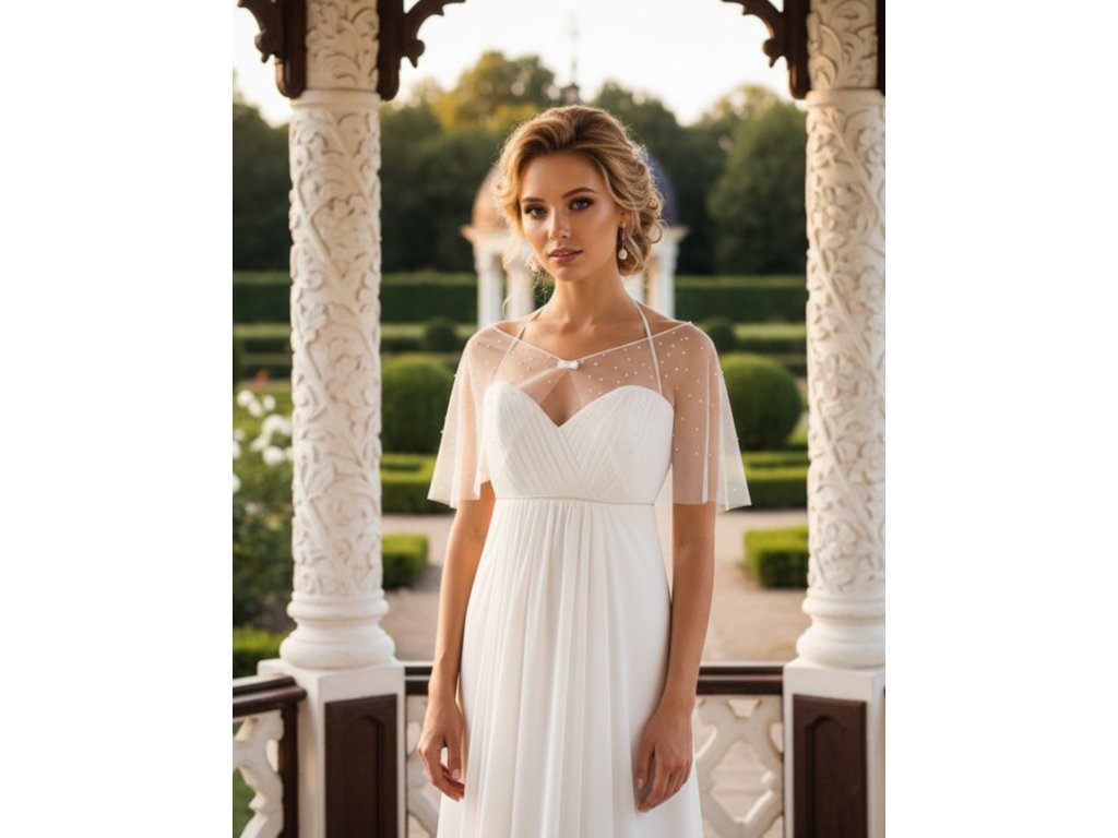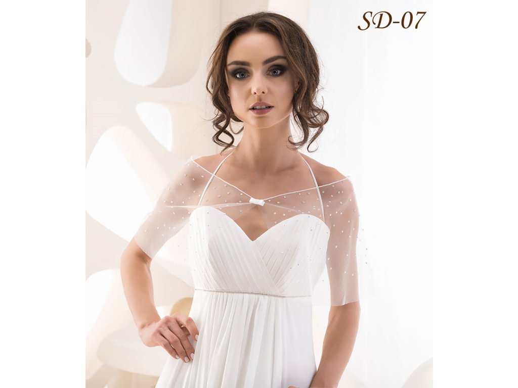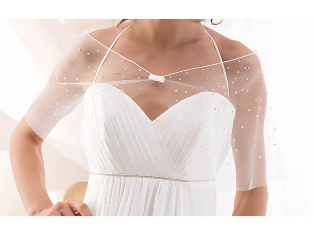 Svadobný tylový šál s kamienkami: SD-07, biely