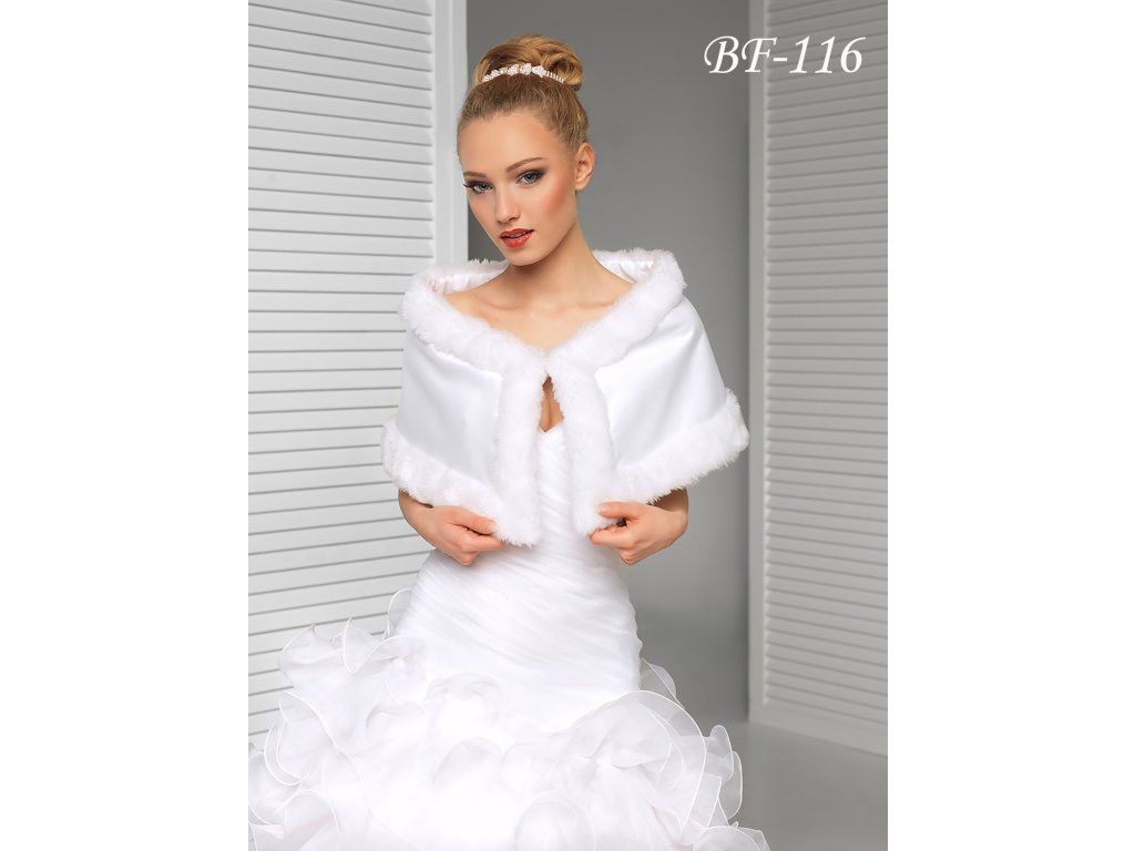 Taftová svadobná pelerína lemovaná kožušinou - biela: BF-116