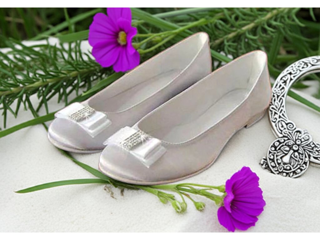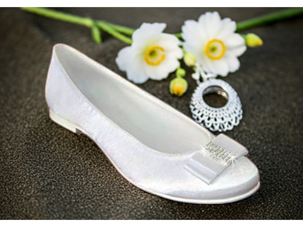 Saténové svadobné balerínky s ozdobnou mašľou.