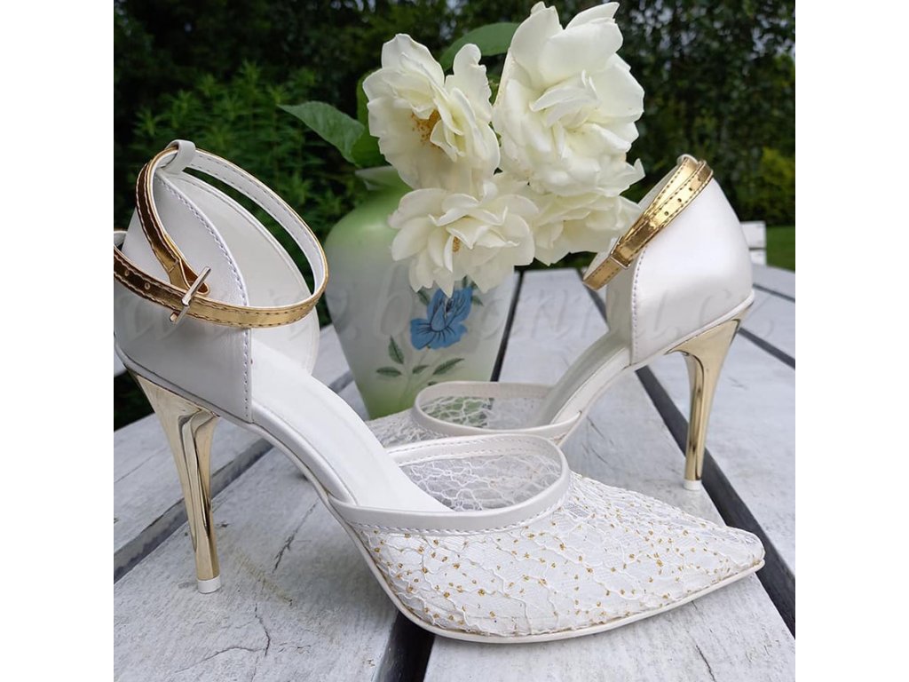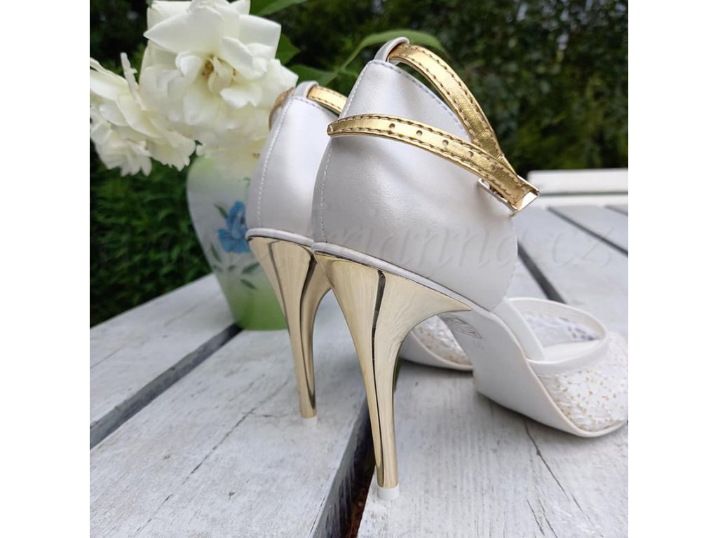 Bielo-zlaté luxusné svadobné topánky pre nevestu