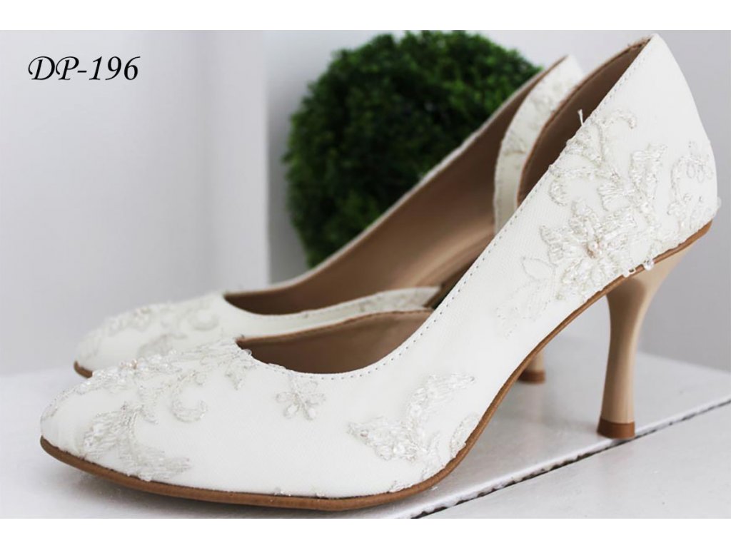 Čipkované svadobné lodičky - slonovinové