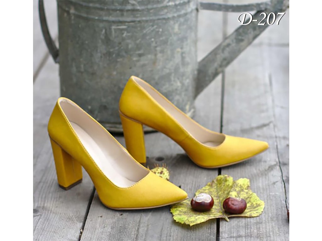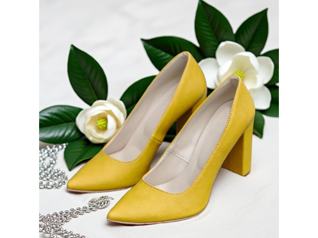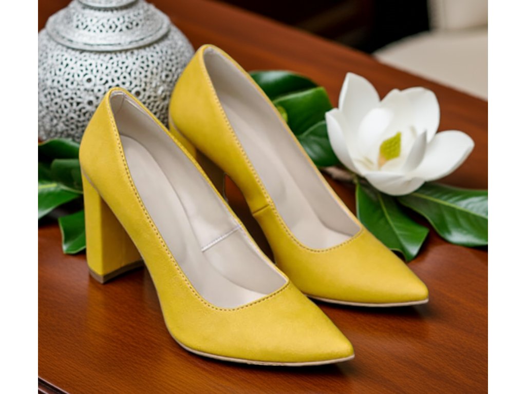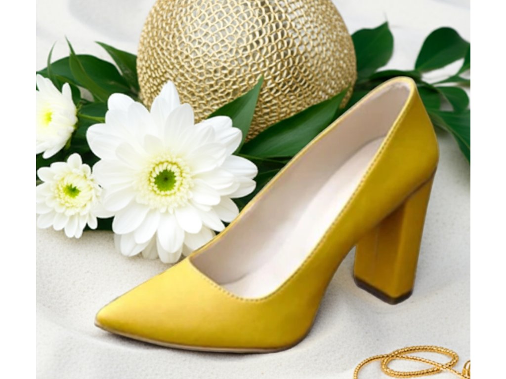 Široký podpätok č. 3 potiahnutý látkou, výška podpätku je 9 cm.