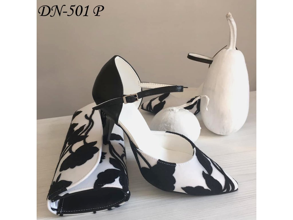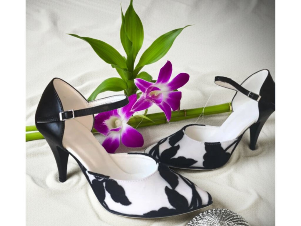 Kožené svadobné topánky potiahnuté čipkou - čiernobiele