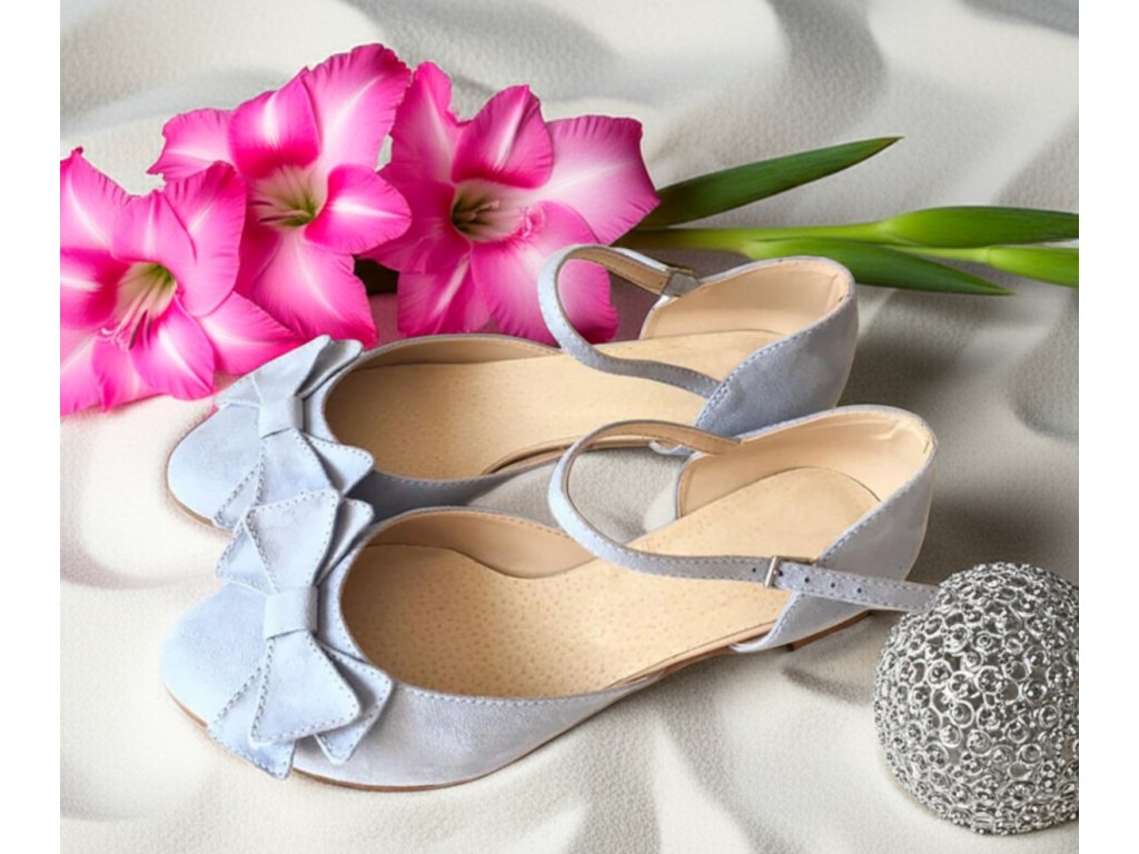 Semišové svadobné topánky s mašľou.