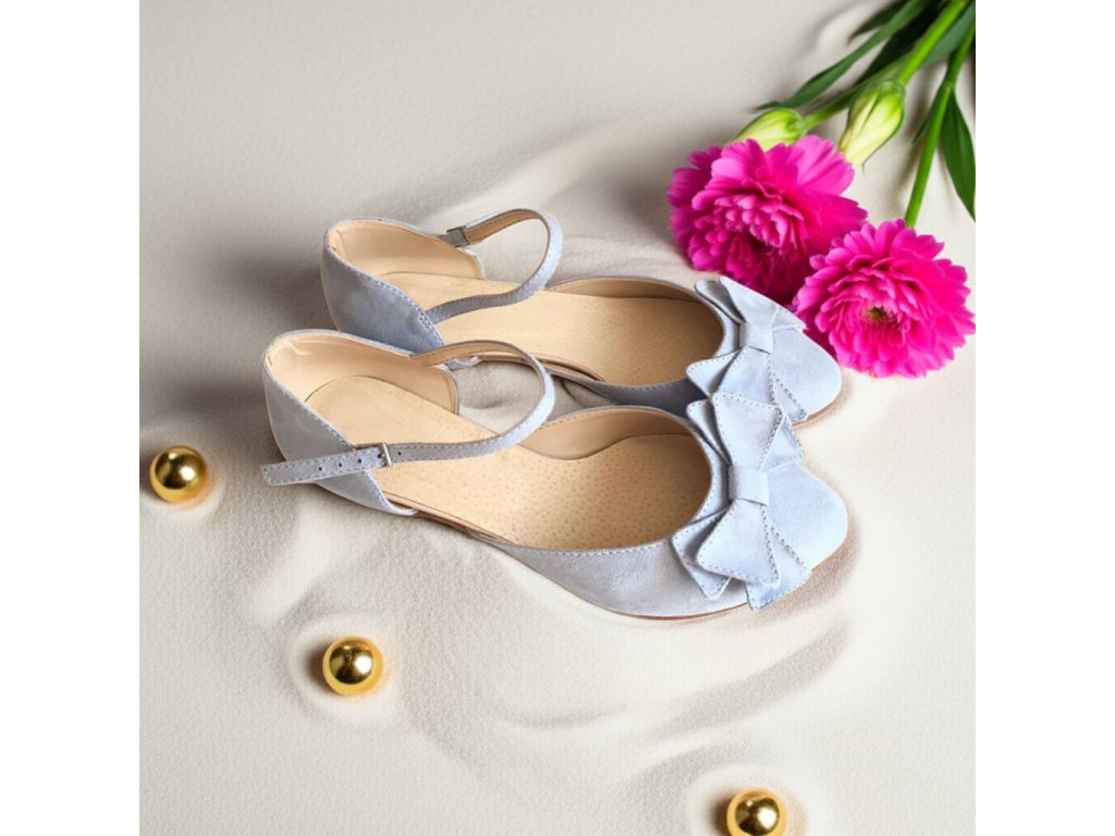 Nízke semišové svadobné topánky s mašľou - svetlo modré