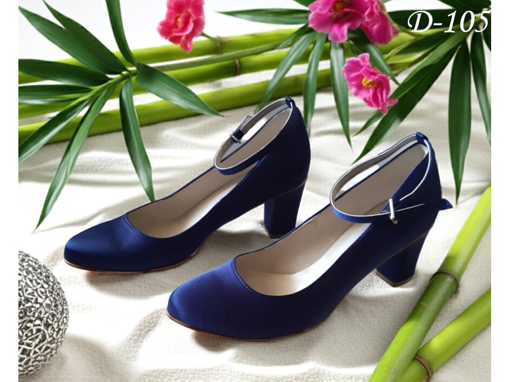 Saténové lodičky na hrubom opätku – granátovo modré