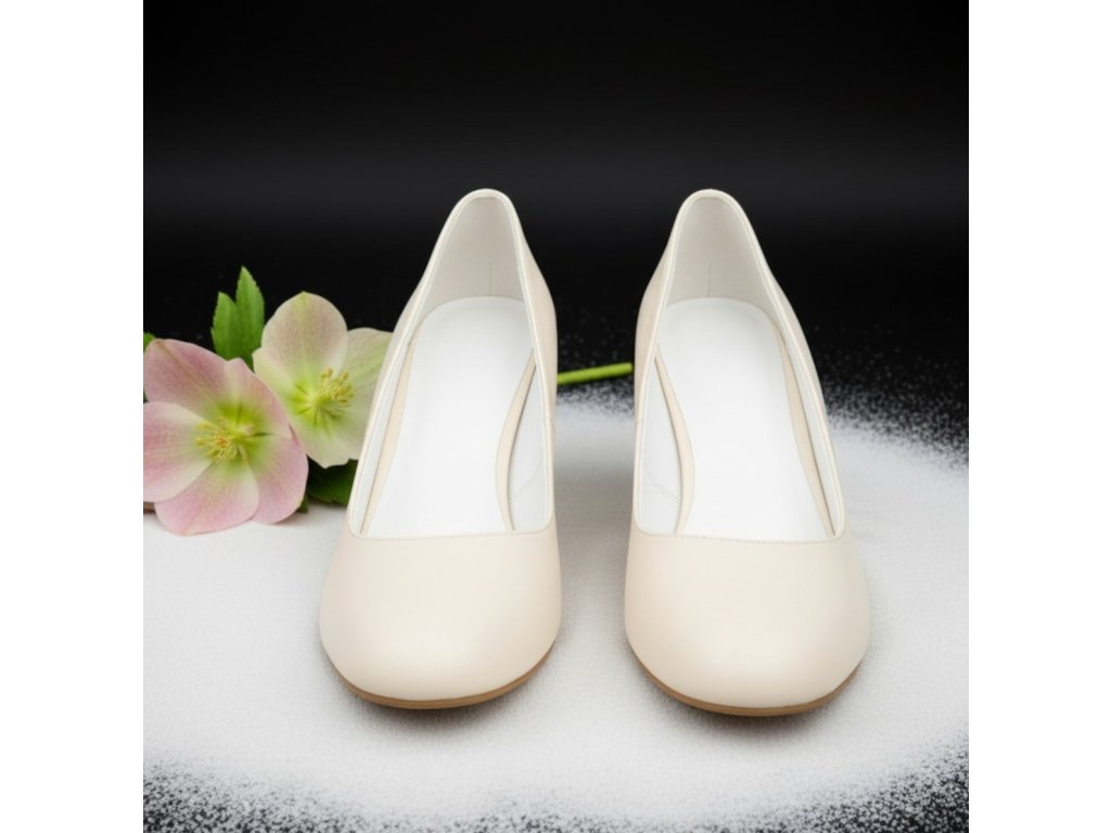Saténové svadobné lodičky na nízkom podpätku - smotanové