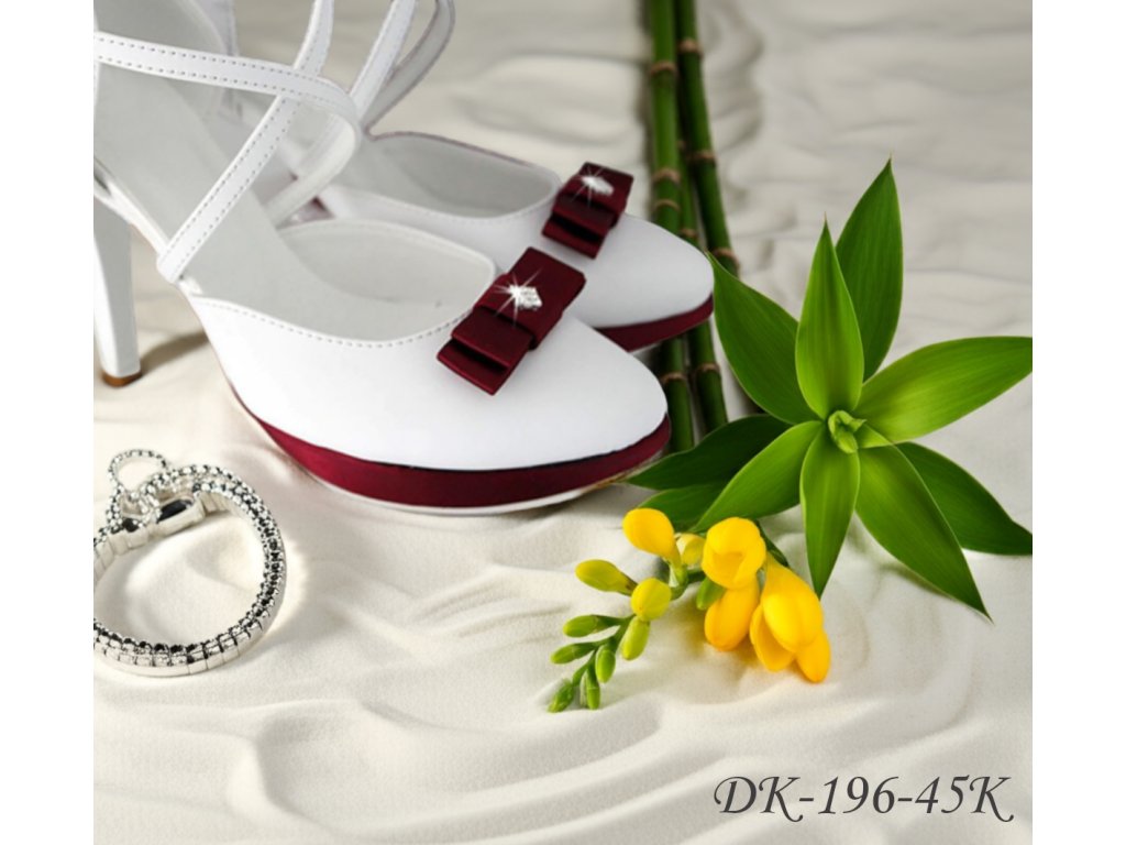 Saténové svadobné topánky na plaforme, zdobené mašľou.