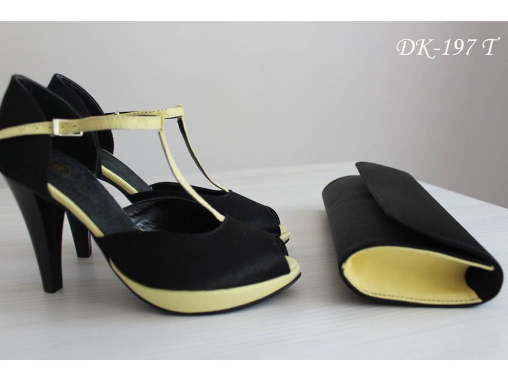 Saténové svadobné topánky - čiernožlté