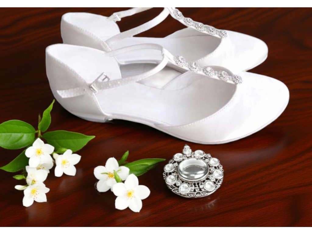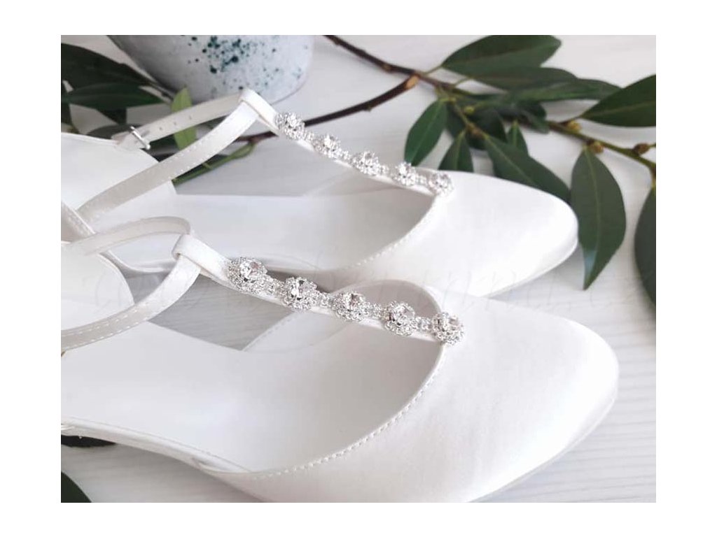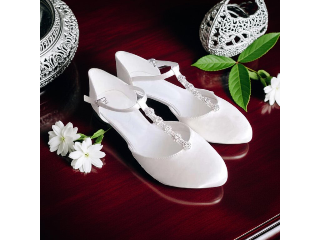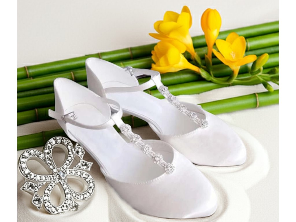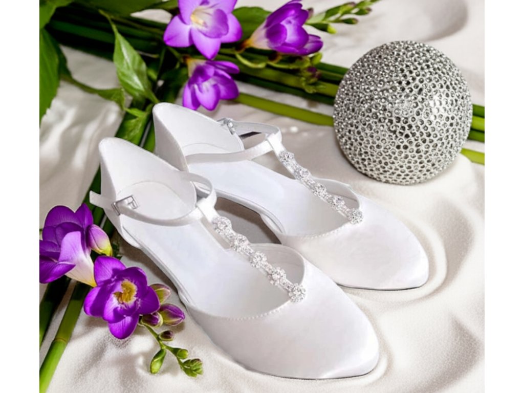 Saténové svadobné topánky so štrasovým zapínaním - biele