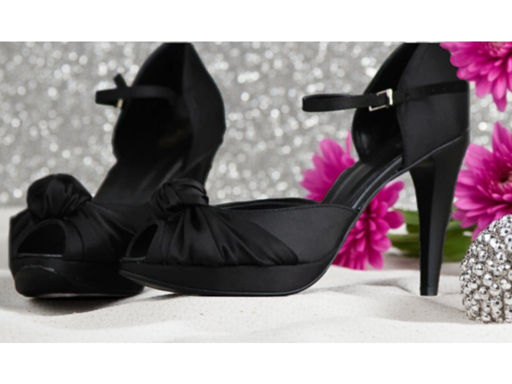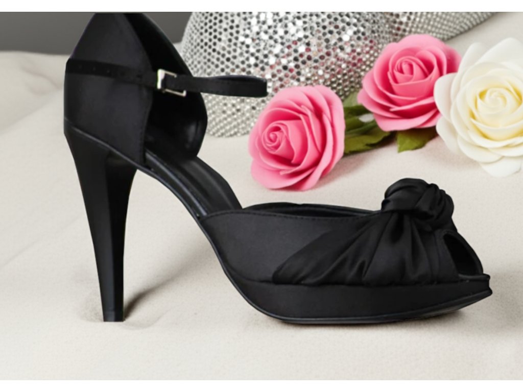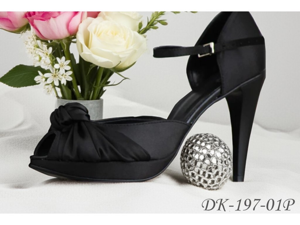 Saténové topánky na platforme, zdobené saténovým uzlom.