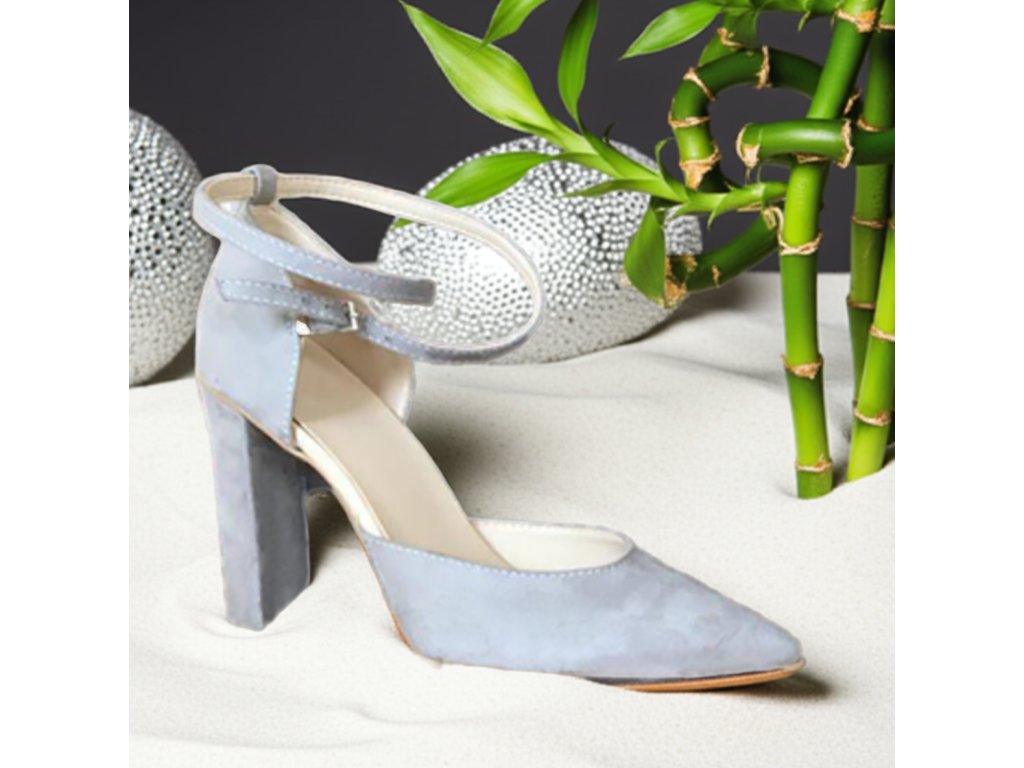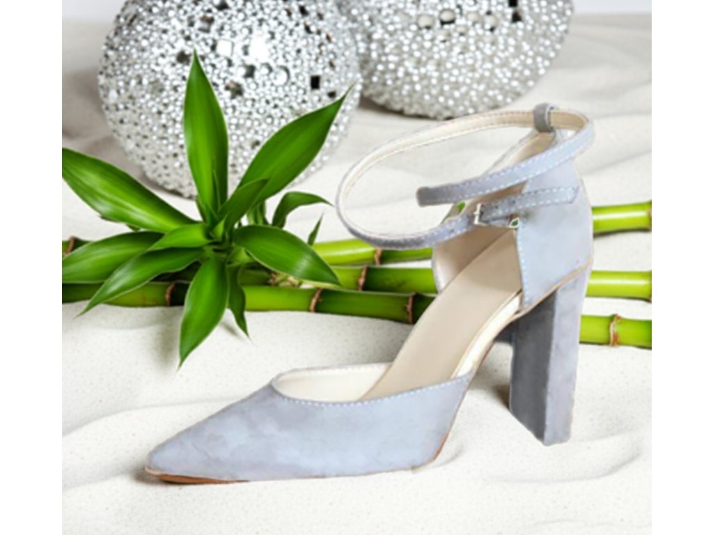 Semišové svadobné topánky s širokým podpätkom - šedé