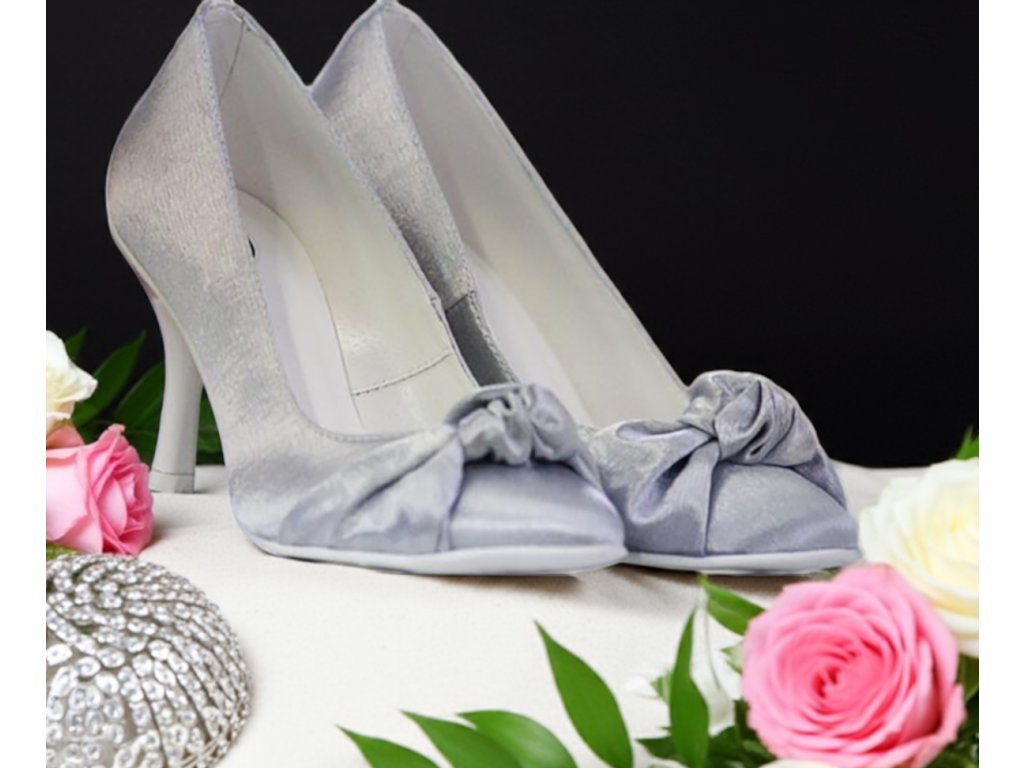 Atlasové svadobné lodičky s ozdobným uzlom.