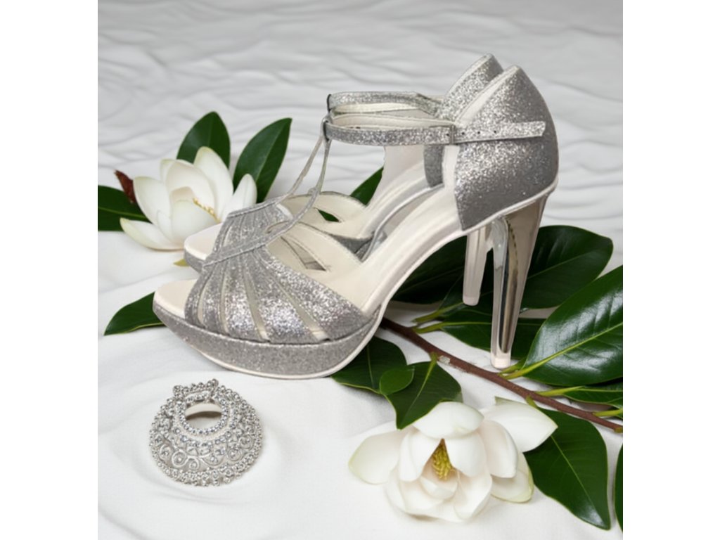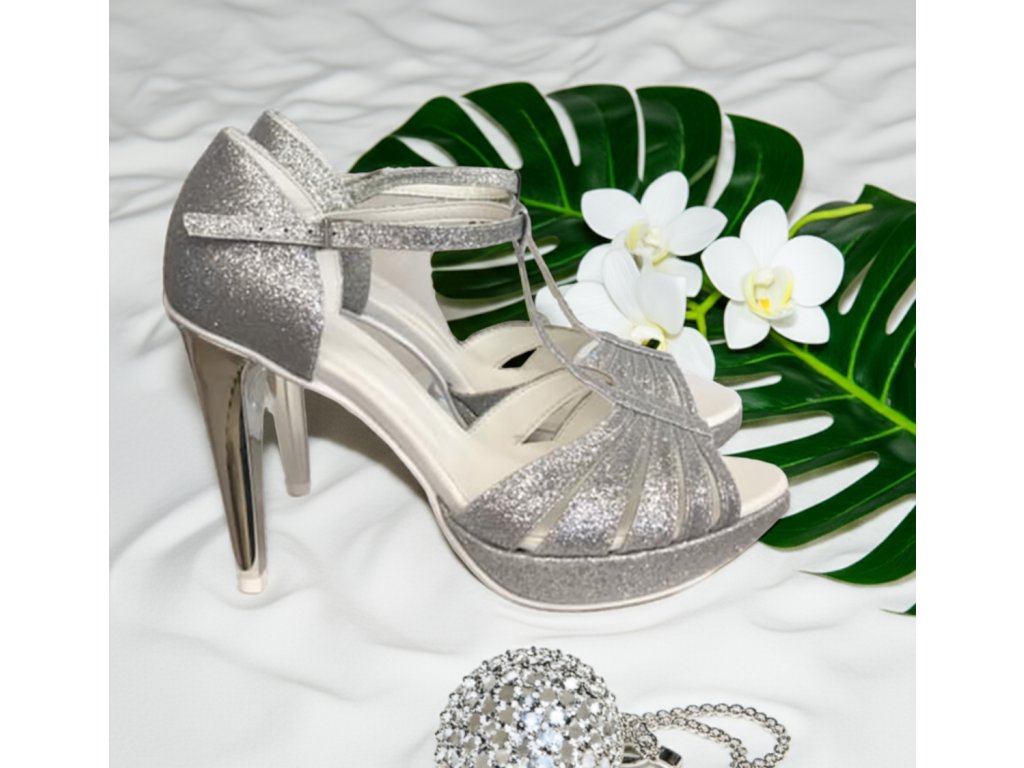 Strieborné svadobné sandálky na platforme
