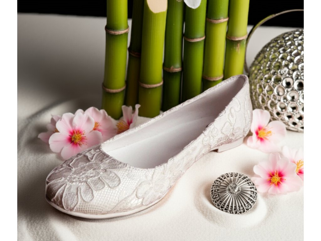 Svadobné čipkované balerínky - biele