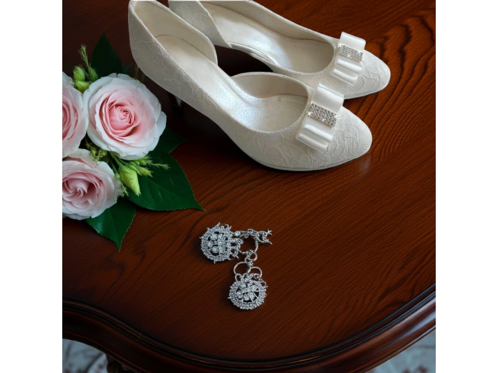 Čipkované svadobné lodičky s ozdobnou sponou.