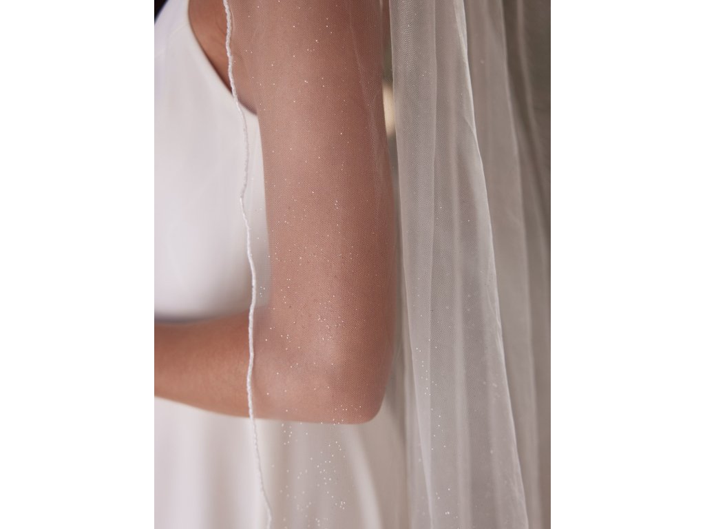 Dlhý jednovrstvový svadobný závoj s korálkovým okrajom.