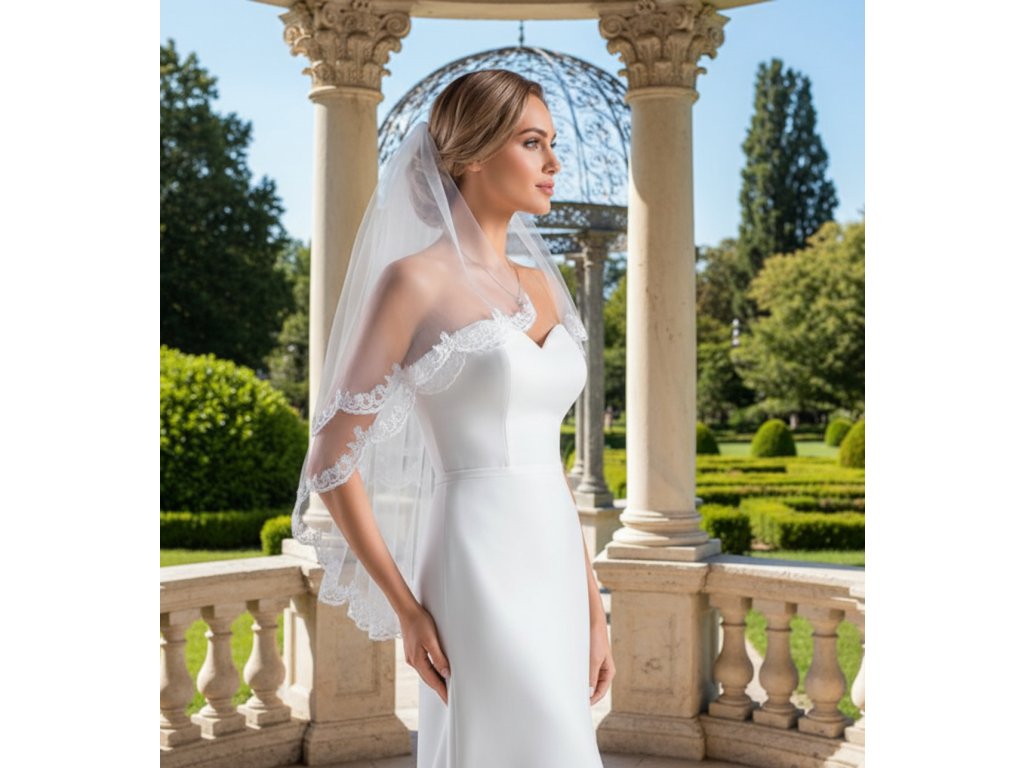 Dĺžka závoja je 75/55 cm, šírka 140 cm.