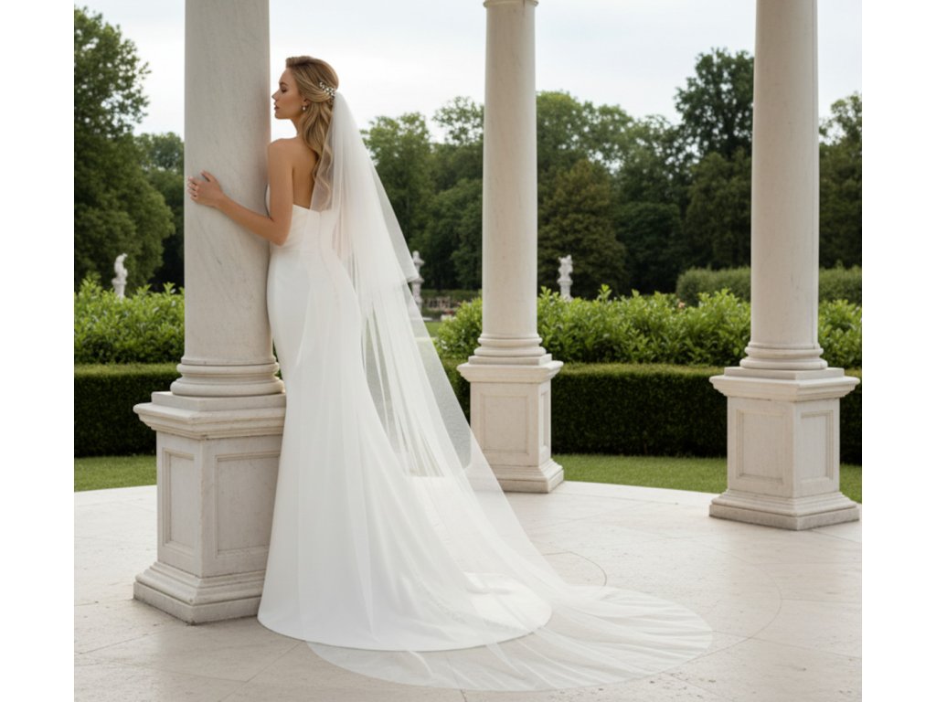 Dlhý svadobný závoj bez lemovania - dvojvrstvový.