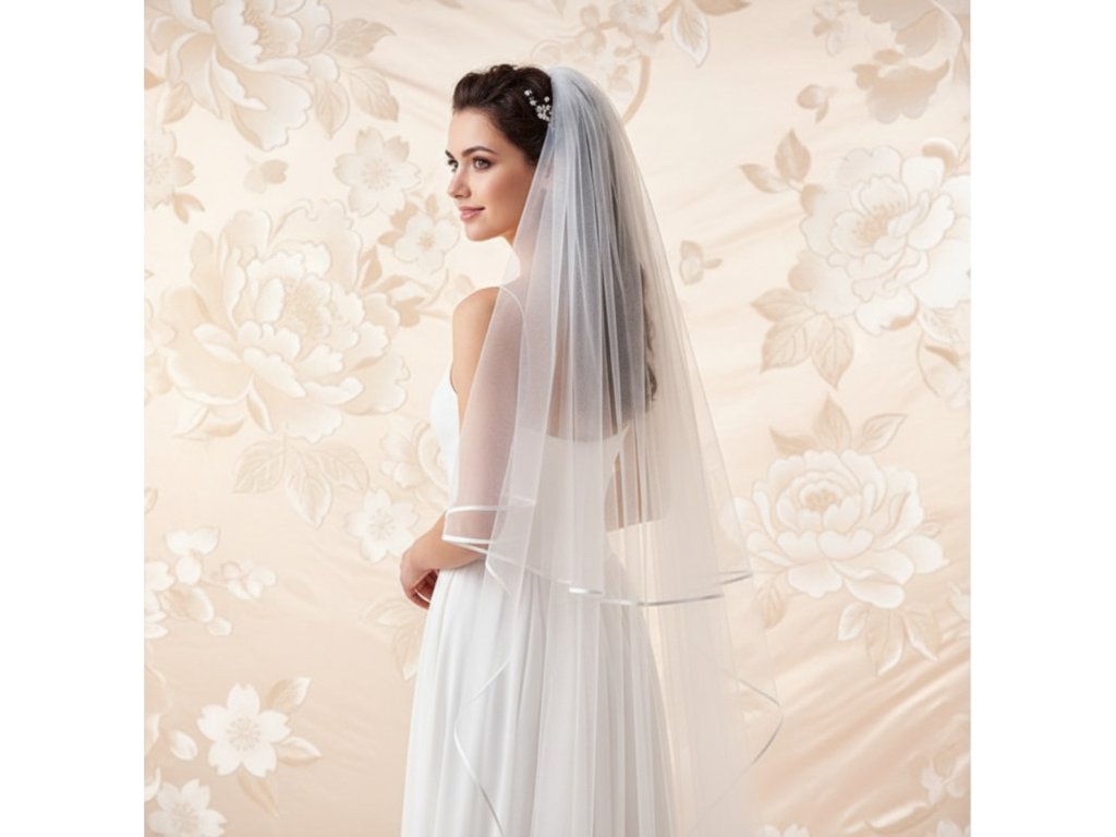Dlhý svadobný závoj lemovaný saténom ZD-127 - rôzne dĺžky