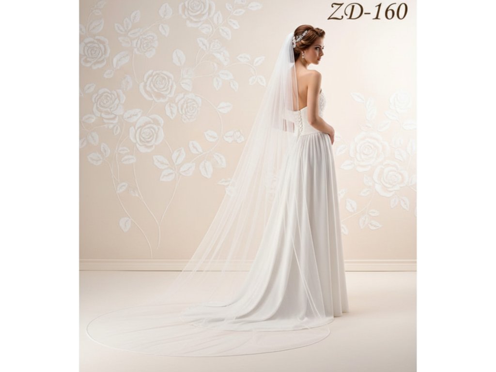 Dlhý svadobný závoj lemovaný saténom ZD-160 - rôzne dĺžky