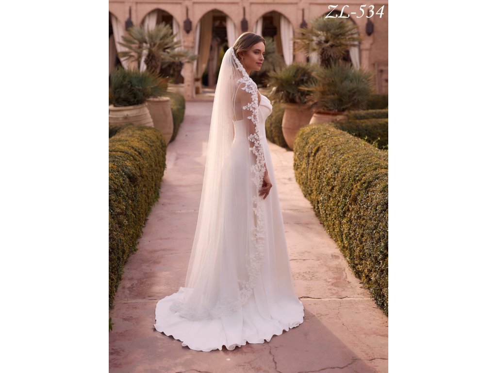 Dlhý svadobný závoj s kvetinovou čipkou: ZL-534
