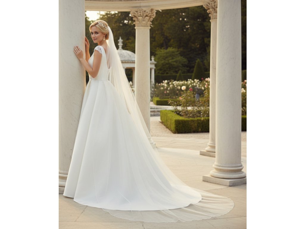 Dlhý svadobný závoj s entlovaným (retiazkovým) okrajom.
