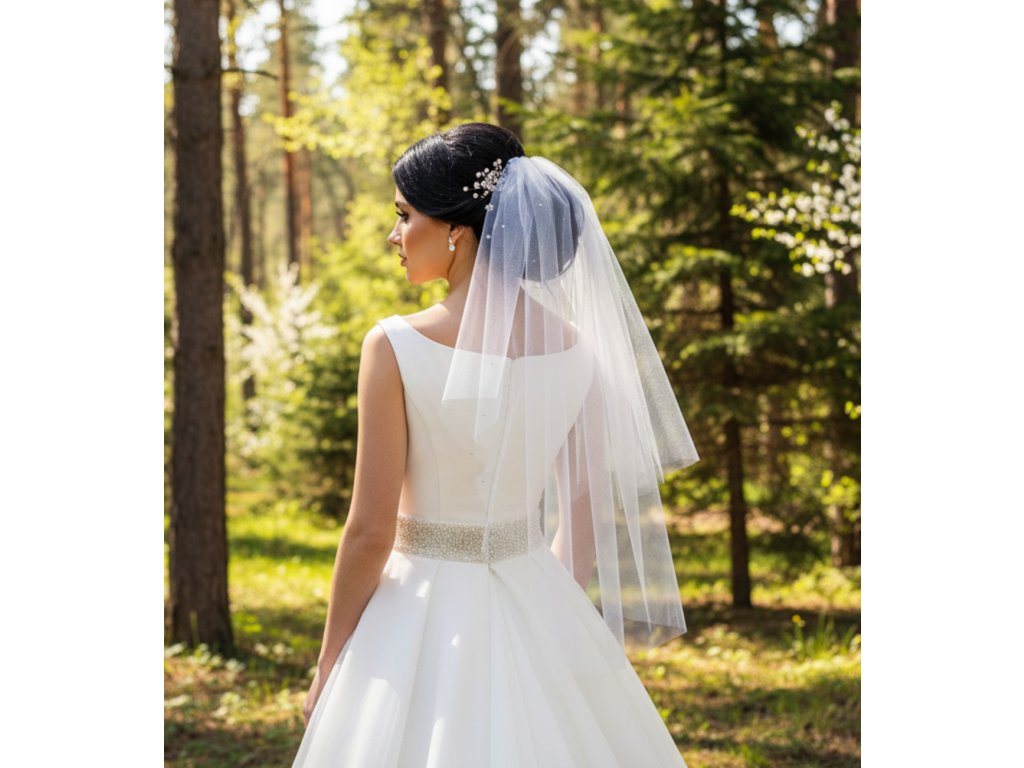 Dvojvrstvový svadobný závoj bez lemu, zdobený kryštálmi ZS-42