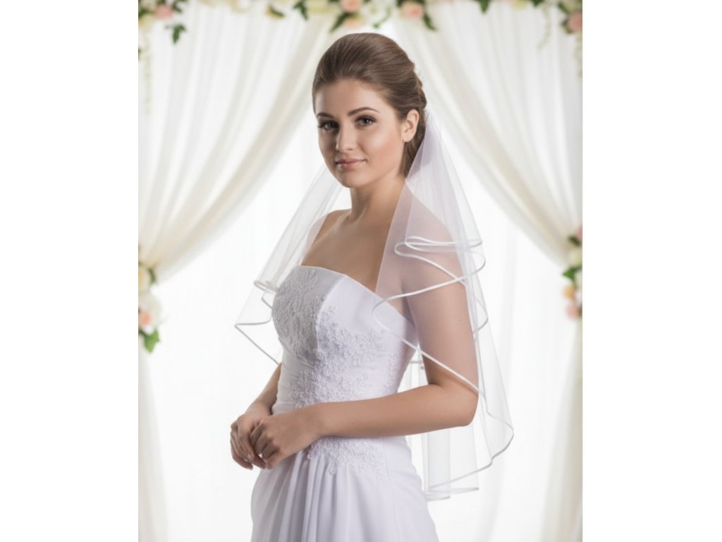 Dvojvrstvový svadobný závoj lemovaný saténom Z-5a biely