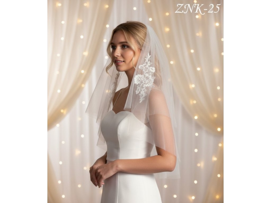 Dvojvrstvový svadobný závoj s čipkou Guipure ZNK-25 biely