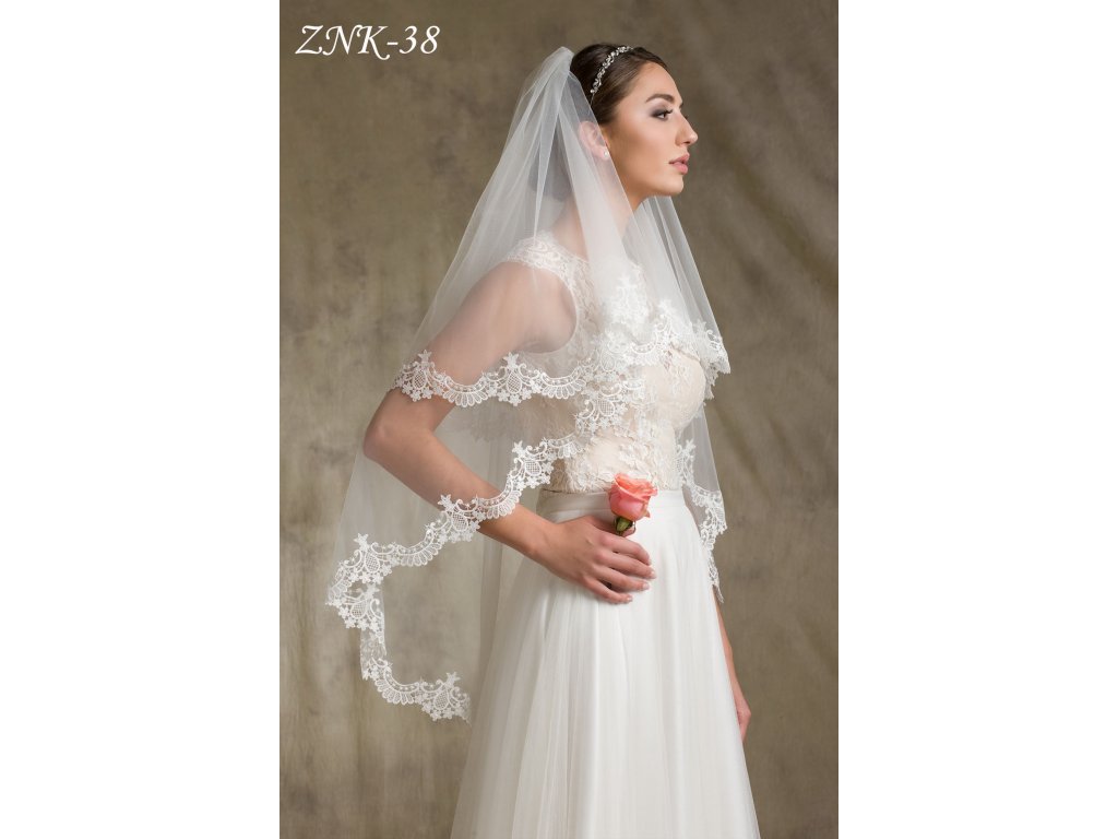 › Svadobné závoje › Dvojvrstvový svadobný závoj s čipkou Guipure ZNK-38 biely/ivory