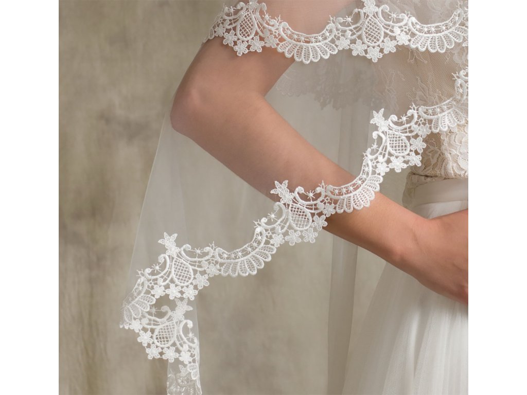 Dvojvrstvový svadobný závoj s čipkou Guipure.