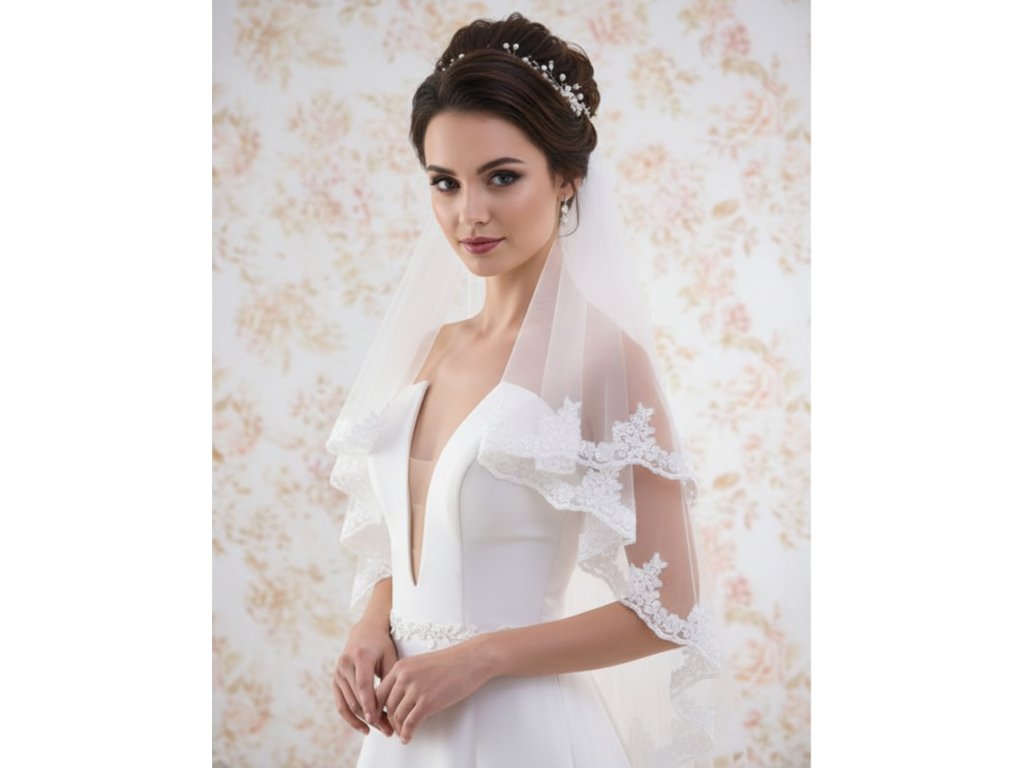 Dvojvrstvový svadobný závoj s kvetinovou čipkou ZD-38