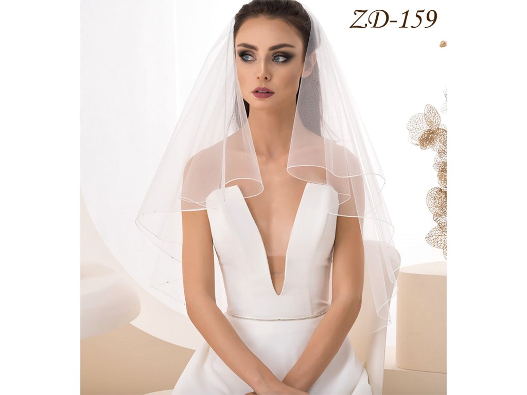 › Svadobné závoje › Dvojvrstvový svadobný závoj zdobený 40 kryštálmi ZD-159