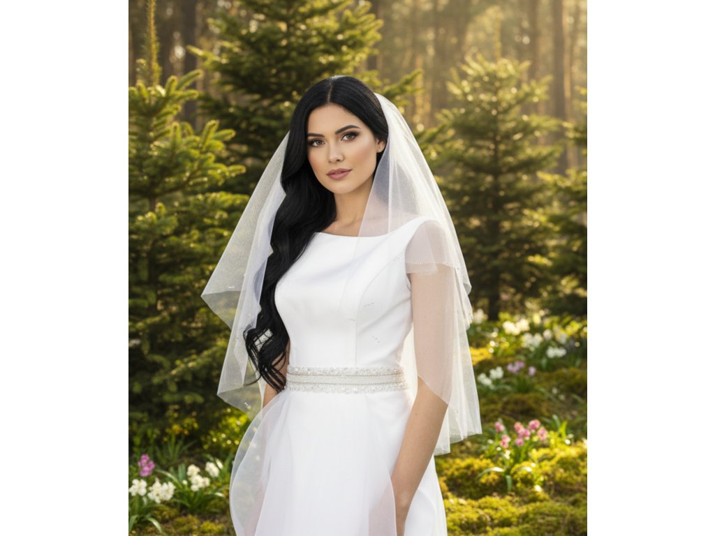 Dvojvrstvový svadobný závoj bez lemovania, zdobený kamienkami.