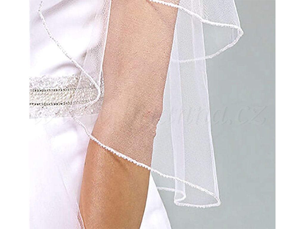 Jednoduchý svadobný závoj lemovaný korálkami.