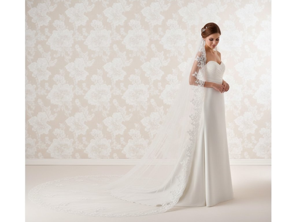 Katedrálny svadobný závoj s čipkou.