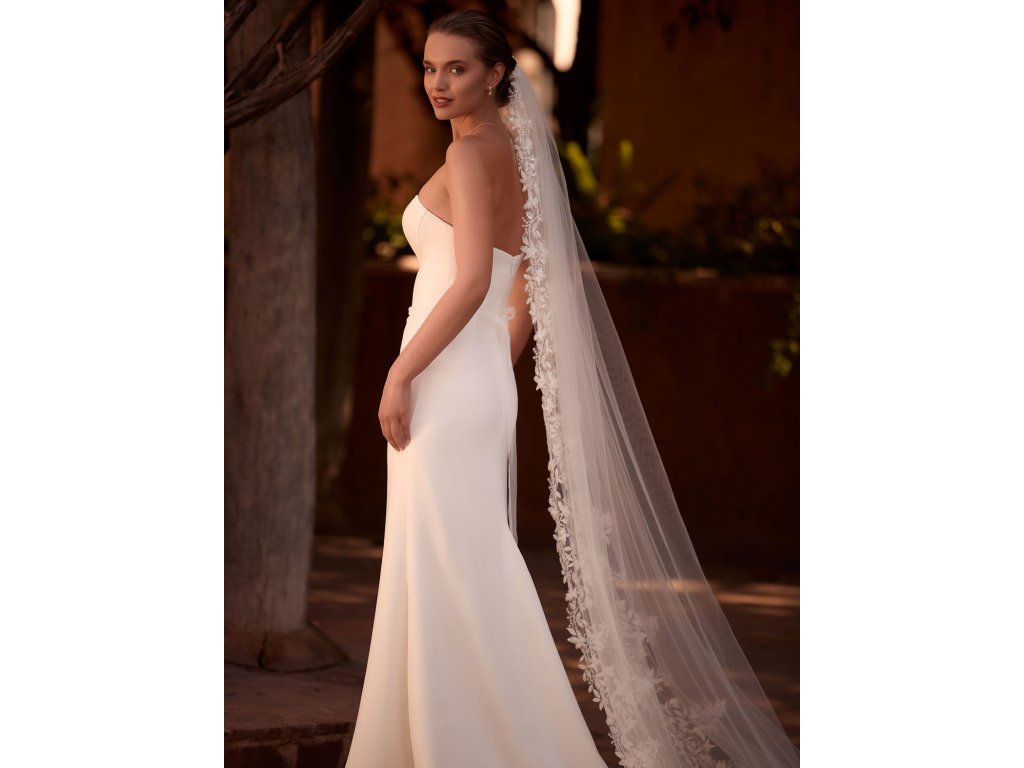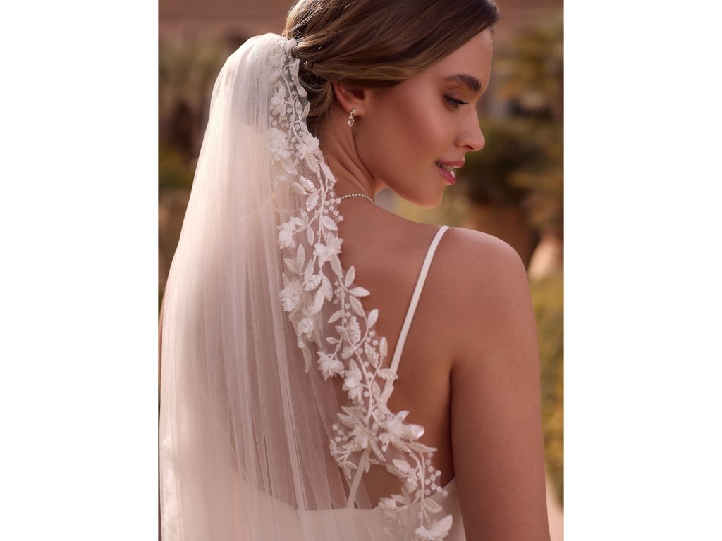 Závoj je vyrobený z extra jemného a mäkkého tylu typu „soft pure tyle“ s hodvábnym efektom.