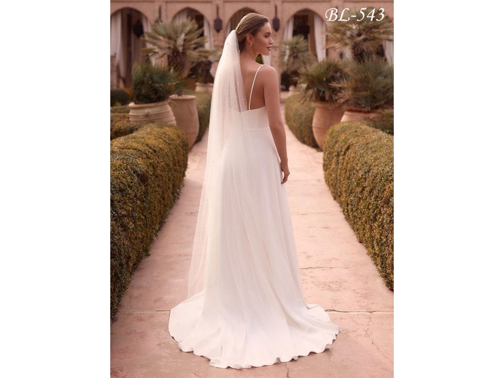 Svadobný závoj je vyrobený z extra jemného tylu typu pure soft tulle s hodvábnym efektom.
