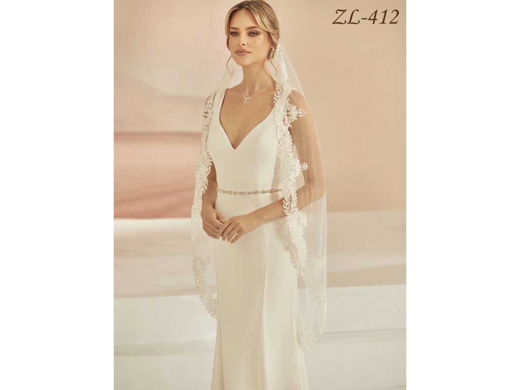 Stredne dlhý svadobný závoj s výraznou čipkou: ZL-412